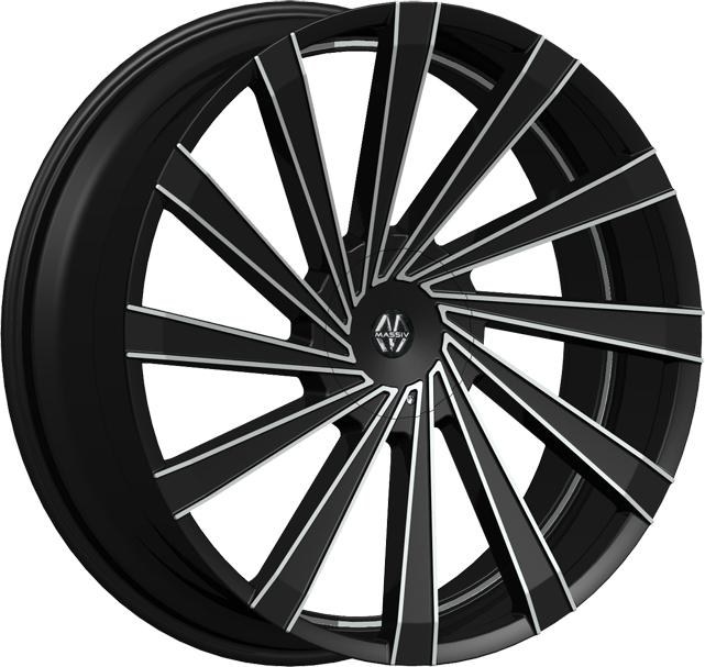 20X8.5 5-114.3 / 5-120 +38 74.1 BLACK W/MACH FACE / UNDERCUT PINSTRIPE - VERTAGIO