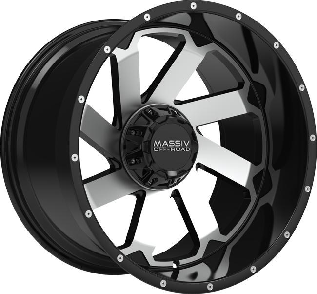 Massiv Off-Road 22X10 6-135 / 6-139.7 NEG18 108 BLACK WITH MACH FACE / MILLED RIVETS (FITS 2019+) Login for Pricing and Ordering